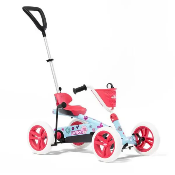 Ce Kart A Pedales Stable Est Aussi Une Auto A Pousser, Avec Laquelle On Peut Aller Se Promener Avec Son Enfant, Facilement Et En Toute Securite. La Barre De Poussee Permet De Garder Le Controle Sur Le Kart A Pedales Et Sur L’Enfant. Comme Le Buzzy Est Stable, Il Ne Se Renversera Jamais, Meme Avec Les Enfants Les Plus Turbulents, Ou En Cas De Bosses Ou D’Inegalites Sur Le Chemin. Cela Contrairement A Beaucoup De Tricycles 2 En 1, Qui, Ayant 3 Roues, Sont Nettement Moins Stables. L’Enfant Est-Il Fatigue Et Veut-Il Etre Pousse, Ou Bien Veut-Il Recommencer A Jouer ? On Transforme Le Buzzy En Un Clin D’Oeil D’Une Voiture A Pousser En Un Kart A Pedales Et Tout Aussi Vite Dans Le Sens Contraire.