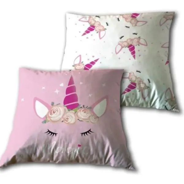 Un Coussin A L’Effigie De Licornes Qui Permettra De Décorer Son Lit Ou De Faire Une Sieste Confortablement Installe.