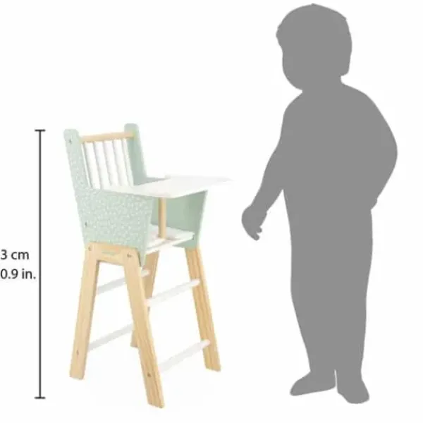 Compatible Avec Les Poupons Et Poupées Jusqu’A 42 Cm (Non Fourni), Cette Belle Chaise Haute Verte De La Marque Janod, Fabriquee En Bois Fsc®, Est Equipee D’Un Coussin Pour Installer Confortablement Sa Poupee Et Lui Donner Le Gouter.