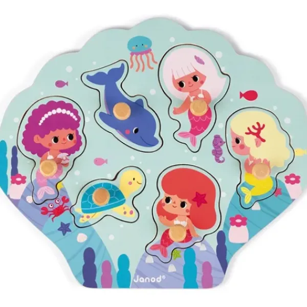 Puzzle Sur Le Theme Des Sirenes Avec Des Tenons Pour Manipuler Facilement Les Pieces Du Puzzle. Tout En S’Amusant Avec Ce Puzzle En Bois, Votre Enfant Developpera Sa Motricite Et Son Imagination.