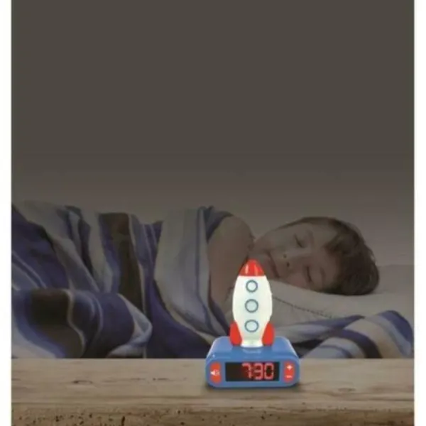 Réveillez-Vous De Bonne Humeur Grace A Ce Radio Réveil Fusee De La Marque Lexibook ! Un Beau Jouet Pour Se Prendre Pour Un Astronaute Et Aller Au Pays Des Reves. Appuyez Sur La Fusee Et Elle S’Eclaire Pendant Quelques Minutes !