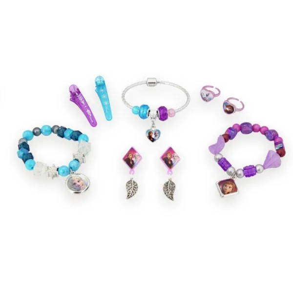 Ce Coffret Contient Un 3 Bracelets, 2 Pinces Pour Les Cheveux, 2 Boucles D’Oreilles Illustrees Avec Le Visage D’Anna Et Elsa Et Deux Bagues (Une Bague Illustree Avec Olaf Et Une Bague Illustree Avec Anna).