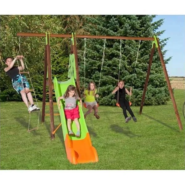 Il Est Compose De 2 Balancoires, 1 Echelle De Corde Et 1 Plate-Forme En Plastique Hauteur 1,20 M Avec 1 Garde-Corps En Plastique Et 1 Toboggan 2,63 M De Glisse.