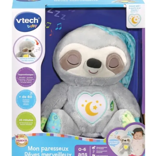 Les Mouvements De Tete De La Peluche Aident Bebe A Se Detendre Et Les Effets Sonores L’Incitent A Suivre La Respiration De La Peluche. Pour Rassurer Bebe, Le Ventre Du Paresseux Possede Un Coeur Lumineux Qui Vient Diffuser Une Douce Lumiere.