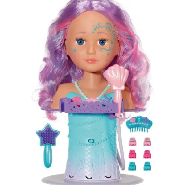 Cette Tete A Coiffer Sirene A De Longs Cheveux Colores Roses Et Violets. Elle Est Ideale Pour Jouer Pendant Des Heures Dans Le Bain. Ses Cheveux De Qualites Permettent De Creer De Nombreuses Coiffures. Les Pinces Fournies Et Le Diademe Permettent A Votre Enfant De Laisser Libre Cours A Son Imagination Pour Des Creations De Coiffures Originales Dignes D’Un Professionnel.