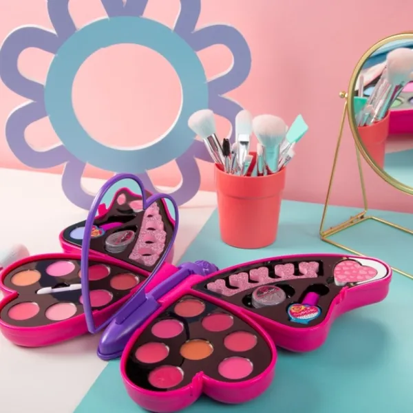 Le Coffret De Maquillage Crazy Chic Contient Des Fards A Paupieres, Des Brillants A Levres Et Des Vernis A Ongles ! Les Enfants Peuvent Positionner Le Miroir Au Centre Pour Parfaire Leur Maquillage. Une Fois Le Look Termine, Les Enfants Peuvent Refermer Leur Coffret De Beaute Papillon Pour L’Emporter Avec Eux !