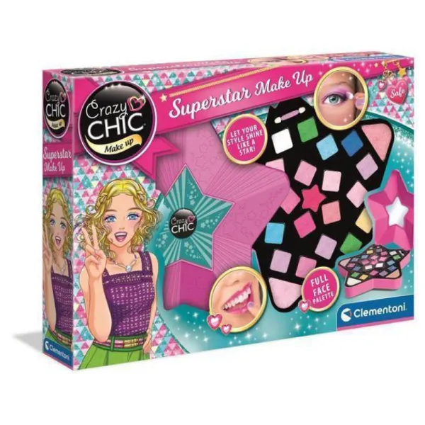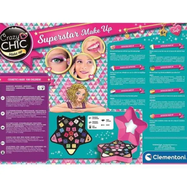 Dans Ce Coffret De Maquillage Super Make-Up Star De Crazy Chic, Les Enfants Peuvent Se Maquiller Et Se Faire Une Beaute Unique Pour Briller Comme Une Star. La Palette De Make Up Contient Du Brillant A Levres, Du Fard A Paupieres Et 2 Applicateurs Pour Se Maquiller Avec Precision. Grace Aux Differentes Couleurs De Cette Palette, Les Enfants Vont Pouvoir Laisser Libre Cours A Leur Imagination Et Mixer Les Couleurs Au Gre De Leurs Envies. Grace Au Miroir En Forme D’Etoile, Votre Enfant Peut Se Maquiller Partout Et Se Faire Une Retouche A Tout Instant.