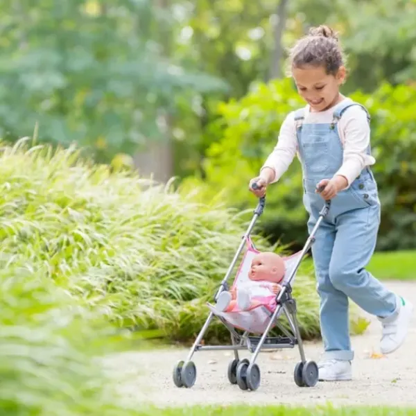 Les Enfants Pourront Imiter Les Grands Et Promener Leur Bebe Avec Cette Poussette Canne Rose Pour Poupons De 36 A 42 Cm.