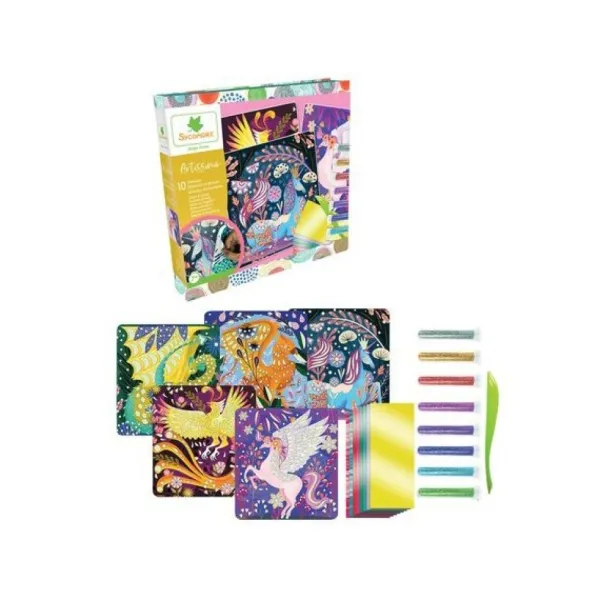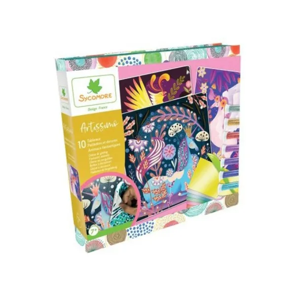 Des Tableaux Autocollants A Décorer Avec Des Paillettes Et Des Feuilles Metalliques, Sur Le Theme Des Animaux Fantastiques, Composent Ce Kit Passionnant, Destine Aux Enfants Des 7 Ans.