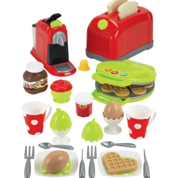 Cet Ensemble Qui Contient Un Gaufrier, Un Grille-Pain, Une Machine A Cafe Et Des Accessoires Est Ideal Afin De Completer La Dinette Et La Cuisine De Votre Enfant.