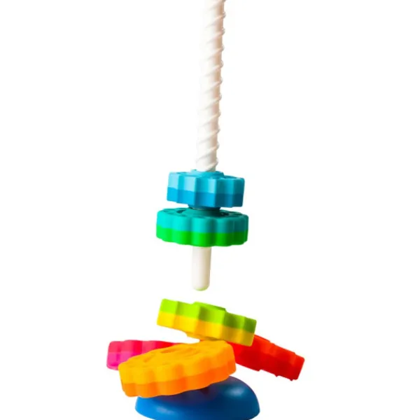Un Jouet A Empiler Qui Tourne, Litteralement ! Placez Les Disques Colores Sur La Tige Filetee En Forme De Tire-Bouchon Et Regardez-Les Tourner Rapidement Et Se Poser Delicatement Sur La Base Oscillante Reversible.