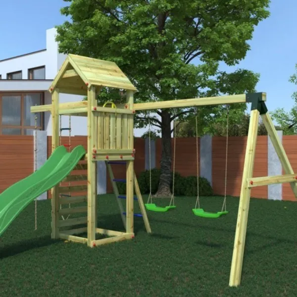 Alliant Securite Et Esthetique, Cette Aire De Jeux Est Certifiee En71 Et Dispose De Pattes De Scellement Pour La Fixer Au Sol. L’Ensemble Des Vis Est En Inox Et Recouvert De Capuchons En Plastique Pour Plus De Securite. Le Bois Massif (Pin Sylvestre) Est Certifie Fsc Et Traite Autoclave Pour Une Plus Grande Durabilite.