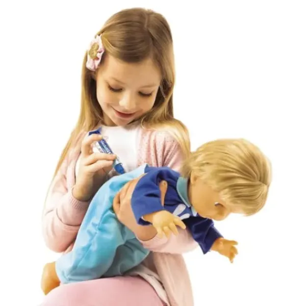 Cicciobello Bobo Est Malade : Ses Joues Sont Toutes Rouges. Vite, Prenez Sa Temperature Pour Regarder S’Il A De La Fievre Et Ecoutez Son Coeur Avec Le Stethoscope. Donnez Lui Des Medicaments Pour Le Calmer.