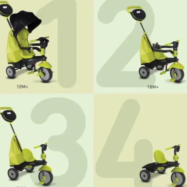 Le Tricycle S’Adapte A Mesure Que Votre Enfant Se Developpe Avec Le Tricycle Pour Bebe (10-36 M), Le Tricycle Guide (18-36 M), Le Tricycle D’Entrainement (24-36 M) Et La Draisienne (2-5 Ans) Inclus.