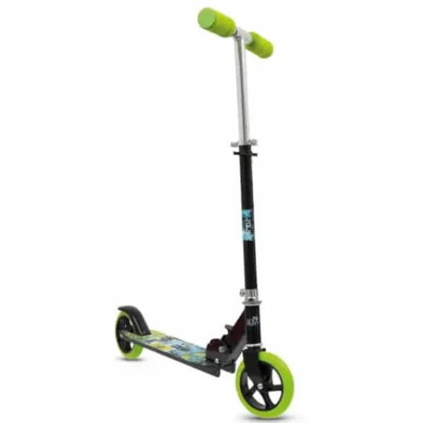 Suspension Avant Integree Pour Absorber Un Maximum De Chocs Et Rouler Confortablement, Roues 205 Mm En Pu Coule Haute Qualite Et Haut Rebond Absorbant Les Vibrations Pour Une Qualite De Glisse, Guidon Aluminium Extra Large Incurve Avec Poignees Confortables Et Ajustable Sur 3 Niveaux De Hauteur (98 A 108 Cm) Afin De S’Adapter A La Taille De L’Enfant. Plateau Antiderapant Avec Une Bequille, Frein Arriere Et Frein Manuel Au Guidon.