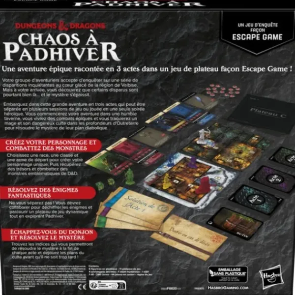 Ce Jeu De Societe Hasbro Gaming Contient : 6 Figurines En Plastique, 11 Plateaux De Jeu, 4 Enveloppes Secretes, 1 Objet Mysterieux, 1 D20, 1D6, 298 Cartes, 44 Jetons En Carton Et Les Regles Du Jeu.