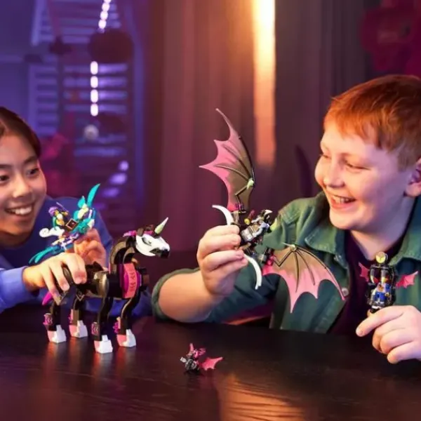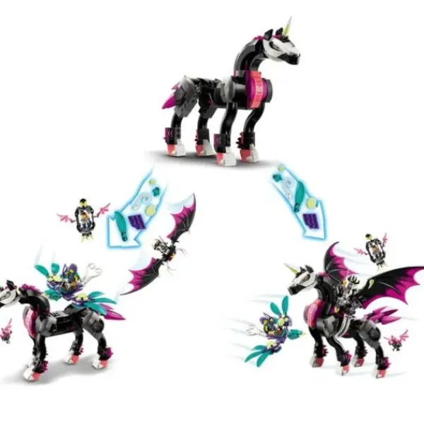 Le Cheval Volant Pegase A Une Tete, Des Hanches, Des Sabots Et Une Queue Articules, Ce Qui Permet Aux Enfants De Lui Faire Prendre Facilement La Pose Et De Jouer Avec Lui. Le Trone Detaille Du Roi Des Cauchemars Et L’Oiseau De Zoey Peuvent Se Connecter A L’Arriere De La Creature Fantastique.