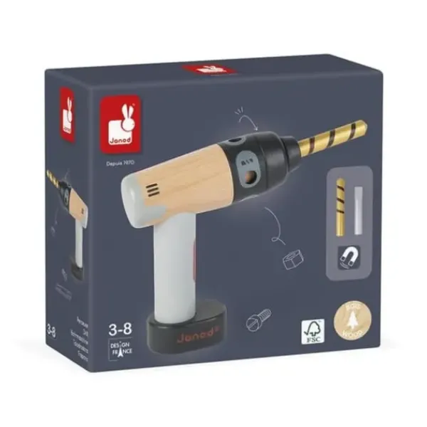 Pour Les Petits Bricoleurs En Herbe, Janod Propose Une Jolie Perceuse-Visseuse En Bois Fsc, Avec Des Fonctionnalites Pensees Pour Faire Comme Les Grands !