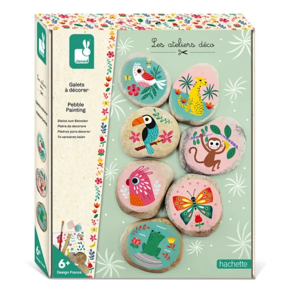 Le Coffret Creatif Les Ateliers Du Calme De Janod Propose Aux Enfants De Décorer Des Galets Avec De La Peinture Et De Belles Images. Grace Au Decalquage Des Images Animaux Sur Le Galet Et A La Peinture, Les Petits Seront Fiers De Décorer Leur Chambre Avec Leurs Creations.