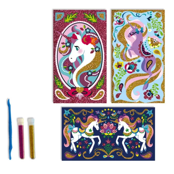Le Kit Les Ateliers Du Calme Propose Aux Enfants De Creer De Magnifiques Tableaux A Paillettes Sur Le Theme Des Licornes. A L’Aide Des Tubes De Paillettes, Les Enfants Doivent Décorer Leurs Tableaux Autocollants Et Les Faire Briller De Mille Feux.