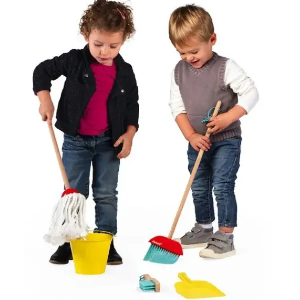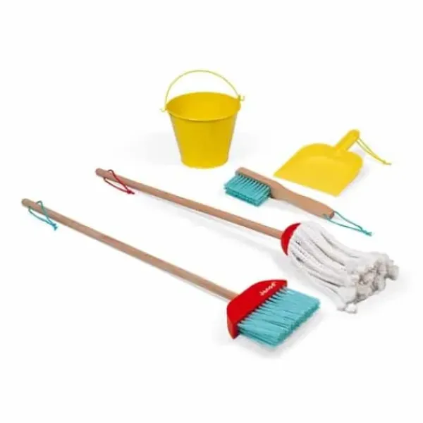 Avec Ce Set De Ménage En Bois Janod, Les Enfants Pourront S’Amuser A Imiter Papa Et Maman. Ils Ont Tous Les Accessoires De Jeu Qu’Il Faut Pour Avoir Une Maison Toute Pimpante : Un Balai, Un Balai-Serpillere, Un Seau, Une Pelle Et Une Balayette.
