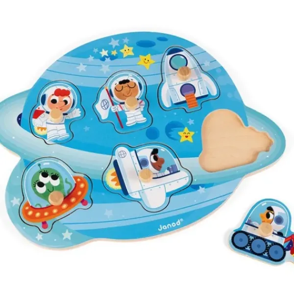 Puzzle Sur Le Theme De L’Espace Avec Des Tenons Pour Manipuler Facilement Les Pieces Du Puzzle. Tout En S’Amusant Avec Ce Puzzle En Bois, Votre Enfant Developpera Sa Motricite Et Son Imagination.