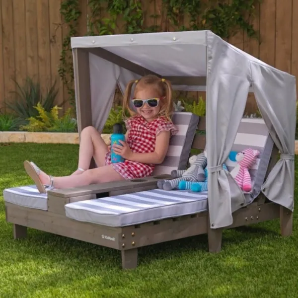 A L’Arrivee Des Beaux Jours, Les Enfants Vont Adorer Se Prelasser Sous L’Auvent A Trois Cotes De La Double Chaise Longue De Kidkraft. Il Est Parfait Afin De Proteger Vos Bambins Du Soleil. Les Deux Porte-Gobelets Sont Parfaits Pour Accueillir Des Boissons Fraiches Par Temps Chaud.