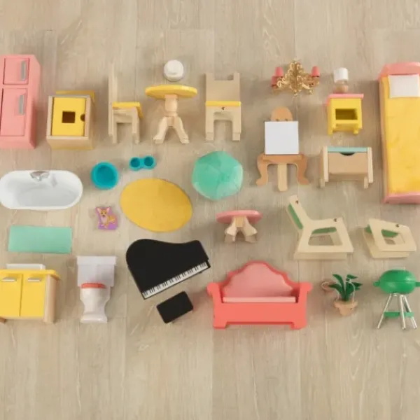 La Maison De Poupées En Bois Est Livree Avec 30 Pieces Avec Lumieres Et Sons, Notamment Un Escalier, Une Cuisine Complete Et Une Salle A Manger, Une Chambre A Coucher Et Plus Encore.