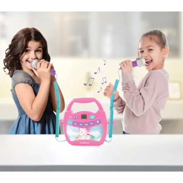 Avec Le Lecteur Karaoké Licorne Et Ses Deux Micros Avec Effets Lumineux Multicolores, Votre Enfant Peut Chanter Ses Chansons Favorites En Compagnie De Ses Amis !