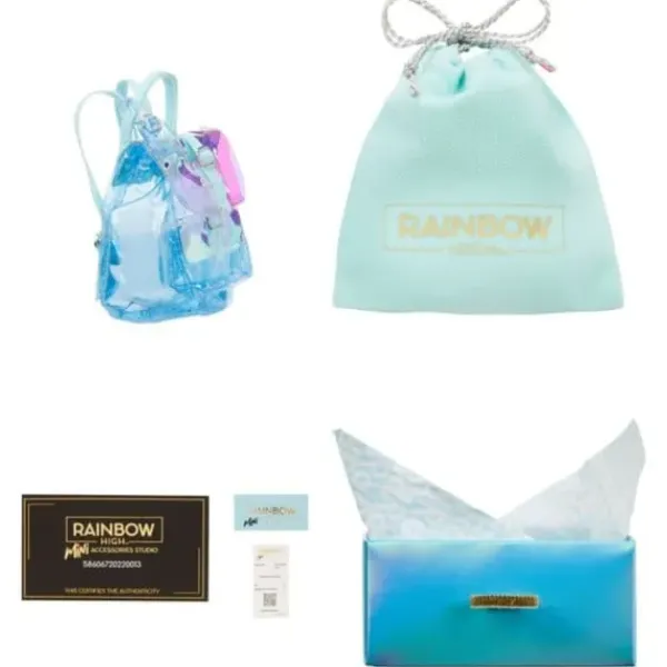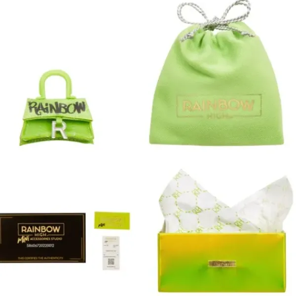 Chaque Sac Est Range Dans Une Boite Fermee Assortie A La Couleur Du Sac. Elle Contient Une Pochette De Rangement Rainbow High, Du Papier De Soie, Un Autocollant Et Meme Un Recu Imprime Avec Un Porte-Recu Assorti Egalement.