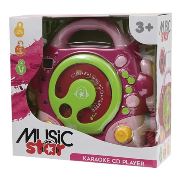 Cet Appareil Est Vendu Avec 2 Micros, Mais Egalement Des Jacks Pour Inserer Des Ecouteurs. Il Possede Differentes Fonctions: La Marche, L’Arrete, La Pause, Le Retour En Arriere Et L’Eject ,Sans Oublier Son Gros Bouton Pour Regler Facilement Le Volume. Il Fonctionne Avec 4 Piles Lr14 Qui Ne Sont Pas Fournies Avec Le Lot.Votre Fille Et Ses Copines Vont Se Faire Un Plaisir De Chanter Comme De Vraies Stars!
