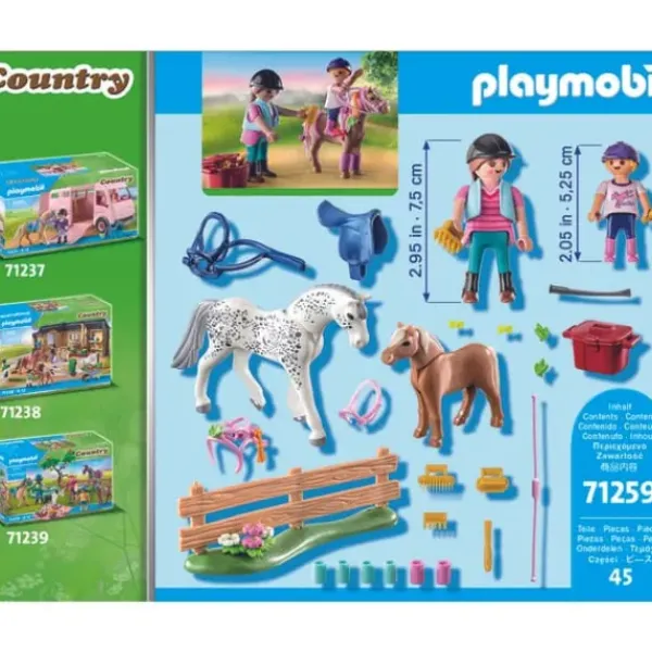 Ce Set Playmobil Contient 45 Pieces Dont 2 Figurines De Cavaliers, 2 Figurines De Chevaux Et De Nombreux Accessoires D’Equitation.