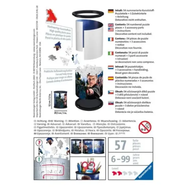A L’Aide Des 54 Pieces De Puzzle En Plastique De Differentes Formes, Realisez Un Pot A Crayons Solide Et Tres Pratique A L’Effigie De Harry Potter, Qui Apportera Une Touche De Magie A Toutes Les Chambres D’Enfant. Assemblez Le Puzzle, Fixez Les Accessoires Et Le Pot A Crayons Est Termine. Vous N’Avez Meme Pas Besoin De Colle ! A Vous D’Y Mettre Tout Ce Qu’Il Peut Contenir : Crayons, Maquillage Et Autres Babioles.