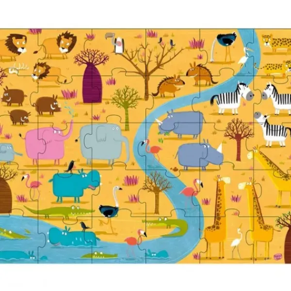 Dans Ce Jeu Educatif, Les Enfants Exploreront L’Afrique A La Découverte De Ses Animaux. Pour Cela, Ils Auront A Leur Disposition Un Livre De 10 Pages Et Un PuZzle Geant Avec 30 Grandes Pieces.