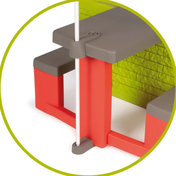 Votre Enfant Peut Inviter Ses Amis A S’Amuser Dans Sa Maison Smoby Et Prendre Un Gouter Dehors, A L’Ombre De Son Parasol.