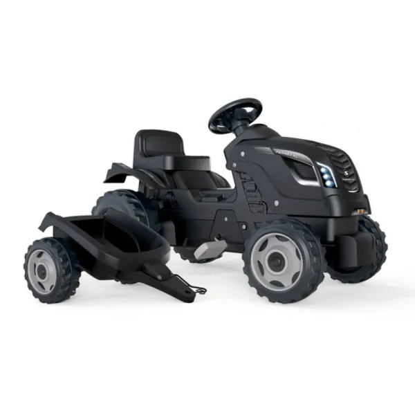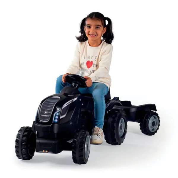 Le Tracteur Xl Farmer Noir Est Accompagne De Sa Remorque Dans Laquelle Vous Et Vos Enfants Pourrez Transporter Tout Ce Que Vous Souhaitez.