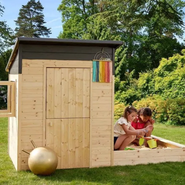 Cette Cabane En Bois S’Integrera Parfaitement Dans Votre Jardin Pour Le Bonheur De Vos Enfants. En Plus, Elle Dispose D’Un Bac A Sable Afin De Jouer A Faire Des Chateaux. L’Interieur De La Maisonnette Offre Une Surface De 1,35 M².