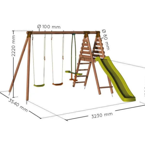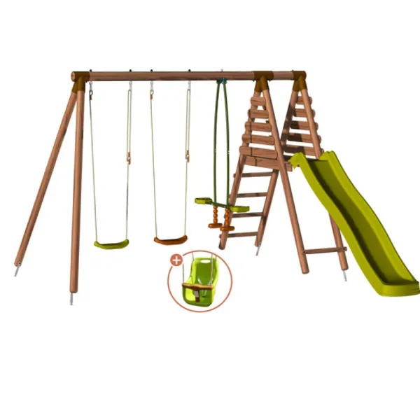 La Station En Bois Se Compose D’Un Toboggan Avec Une Longueur De Glisse De 1,20 M Avec Plateforme Securisee Avec Garde-Corps Et Cales Anticoicement, De 2 Balancoires Et D’Une Balancoire Vis-A-Vis (35 Kg Maximum Par Assise). Un Siege Bebe Avec Ceinture (15 Kg Maxi) Est Egalement Inclus Afin Que Toute La Famille Puisse En Profiter.