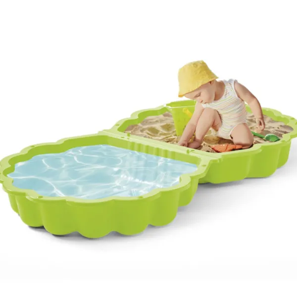 Lorsque Le Bac A Sable Est Ouvert, Vous Pouvez Le Disposez Comme Vous Le Souhaitez Et Remplir Les 2 Compartiments De Sable Et D’Eau Pour En Faire Une Mini-Piscine.