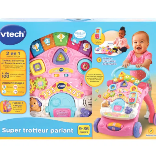 Avec Le Nouveau Super Trotteur Parlant 2 En 1 Rose Et Son Tableau D’éveil Detachable, Votre Bebe Fait Ses Premiers Pas En Toute Securite Et Fais Le Plein De Découvertes Des Son Premier Age.