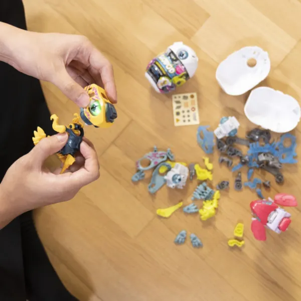 Secouez La Capsule Et Ouvrez La Machoire Des Dinosaures Une Fois Assembles Pour Voir De Quoi Ils Sont Capables !