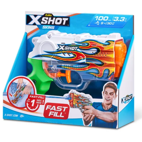 Le Pistolet X-Shot Water Skins Nano Fast-Fill Grace A Son Remplissage Rapide Permet De Remplir Le Pistolet A Eau En Une Seconde Seulement Et De Reprendre Le Combat Bien Avant Vos Adversaires. Il Suffit De Le Plonger Dans L’Eau, Faire Glisser La Trappe, Le Remplir Et Le Fermer Grace A La Technologie De Fermeture Rapide. Petit Et Puissant, Il Tire Jusqu’A 9 Metres Et Son Reservoir Contient 100 Ml.