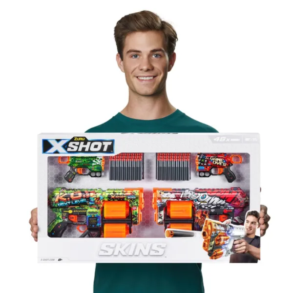Le X-Shot Skins Double Dread Double Menace Combo Pack Contient Suffisamment De Pistolets Et De Flechettes Pour Que Vous Puissiez Vous Affronter Avec 3 Amis. Inclus Egalement 48 Flechettes En Mousse.